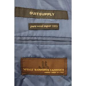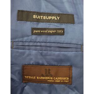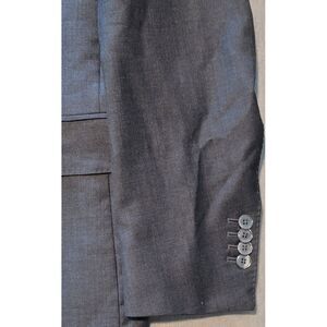 Crafted for the modern gentleman, the Suit Supply Men's VBC Charcoal Gray Sports Coat is a versatile addition to any wardrobe. Tailored to a slim fit, this size 40 Regular blazer boasts a sophisticated notch lapel style and a sleek two-button front. Its durable wool fabric ensures comfort and longevity, while the viscose/rayon lining offers an extra layer of sophistication.