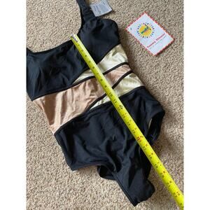 Suit Yourself! One Piece Swimsuit Tummy Thinner Black Gold 28-0673-5 Swim 16