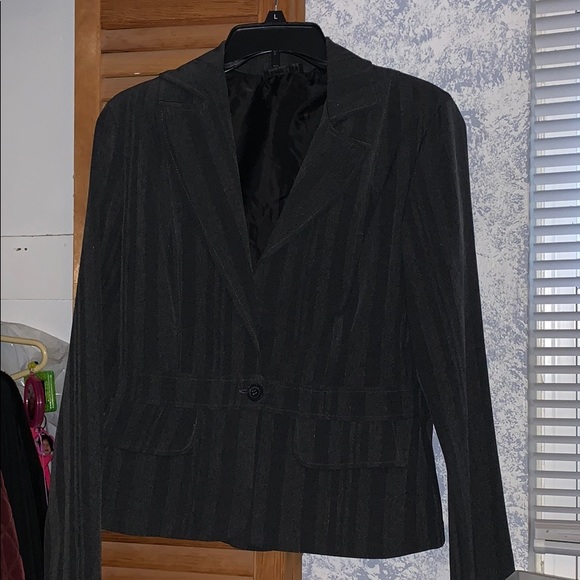 Dark grey, light weight no lining. No size, fits like a medium, size 7 or 8