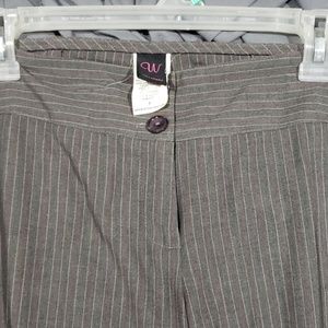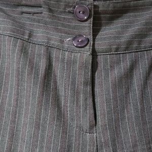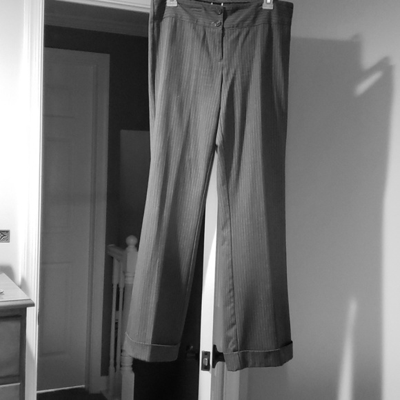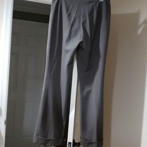 Nice suit pants can be dressed up or casual. Gray with light pink and burgundy stripes