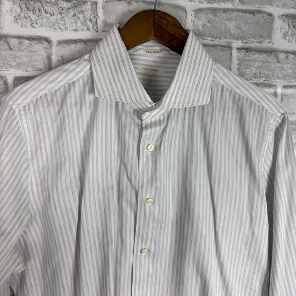 SuitSupply Cotton Tencel Light Gray Long Sleeve Button Dress Shirt 17 Extra SLIM