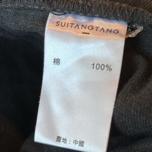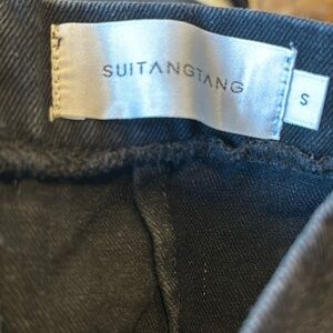 Suitangtang black jean skirt flared and frayed no stains. No rips from non-smoking home. Size small.