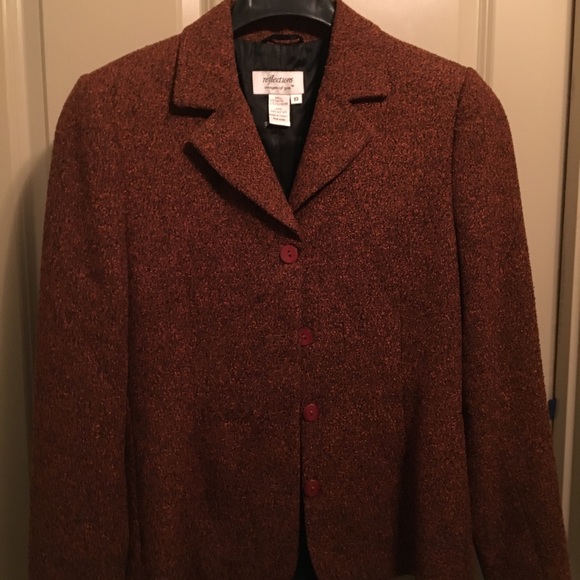 Jacket & skirt new never worn. Clean size10 the color is black and orangish/rust
