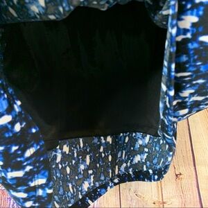 Suite 7 Blue Black Print Tulip Hem Short Sleeve Dress