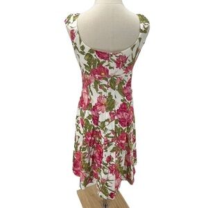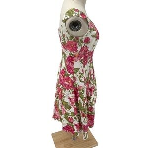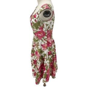 Suite 7 Floral Pink Green White Pleated Sleeveless Dress Size 4 Women's