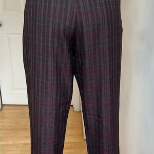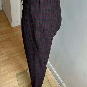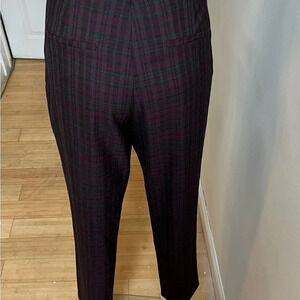 Suite Blanco Pleated Check Plaids Ankle Pants Trousers Burgundy Purple US 6 NWT