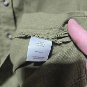 Suite 2939 Linen Blend Cropped Khaki Green Button Down Shirt