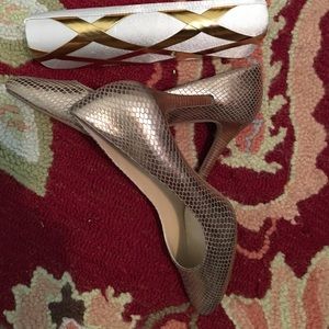 Golden hued Cole Haan pumps! Slip on, 3.5 inches heels, rounded toes, simply gorgeous and beautiful. Yes!