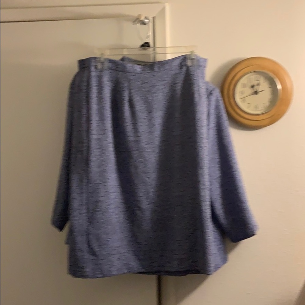 2 piece suit, purple, and blue