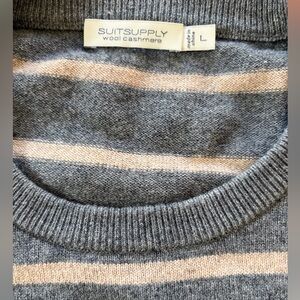 Suitsupply Cashmere Gray and Cream Striped Crewneck Sweater