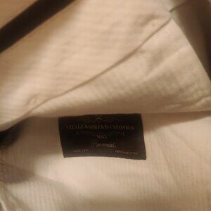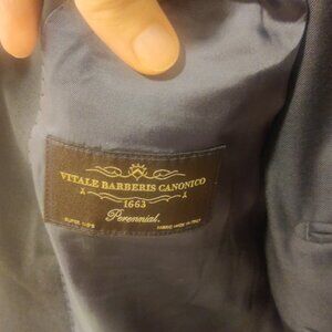 In excellent used condition. Has a puncture in jacket lining. Pocket bags were opened and restitched by hand to taper pant legs - might look sloppy, but doesn't show outside.