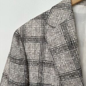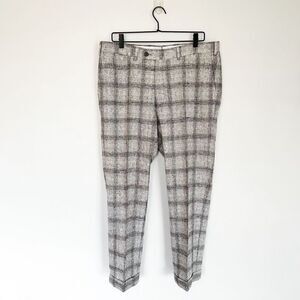 Suitsupply Men’s Textured Linen Blend Havana FL Cream Grey Black Check Windowpan