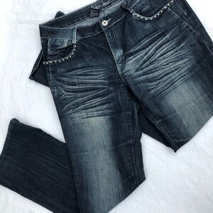 Suka Jeans Embellished peace sign studded denim wide flare leg size 12