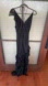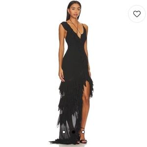 Georgette fabric with ruffle trim, hi-low hem, and train
