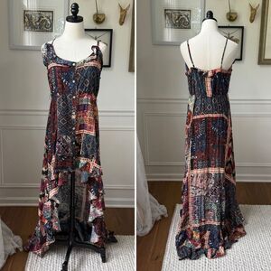 Suki So Juliet Hi Low Kasbah Print Tiered Ruffle Bandana Patchwork Boho Dress $3
