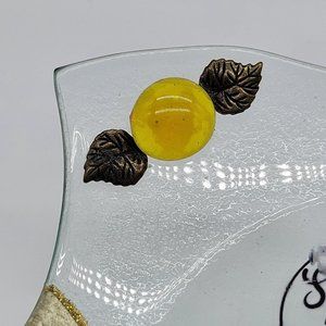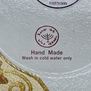 This charming glass dish is a wonderful addition to any home decor. Handmade by a talented artist in Israel, it features a beautiful Sukkot under the stars design that is perfect as a trinket or candy dish. The multicolor dish is made of high-quality glass and has a diameter of 5"x5". With its unique design and durable material, it is perfect for both everyday use and special occasions. The dish is a great way to add a touch of elegance to any room and is ideal for displaying small items or serving treats to guests. Measurements in photos. New without tags
