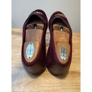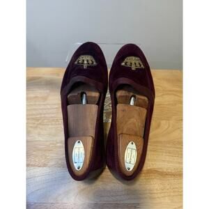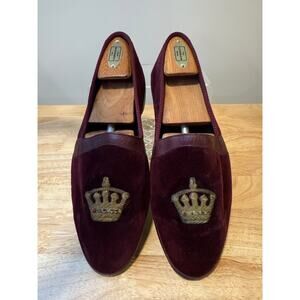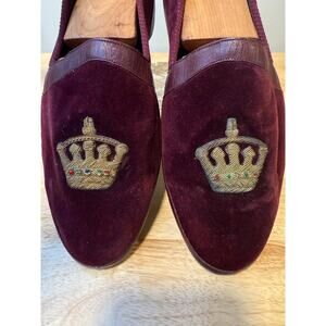 Sulka Red Velvet Slip On Driving Loafers Slipper Shoes w Gold Crown Sz 8.5 JL