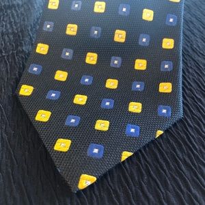 Sulka Vintage Tie 100% Silk - Made in France - Blue and Yellow Square pattern. 4" wide. 58" long. See my additional Sulka and Brioni ties - bundle to save!