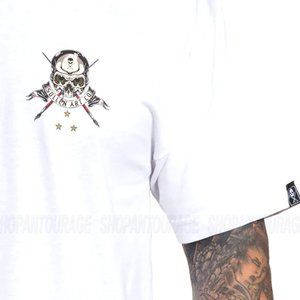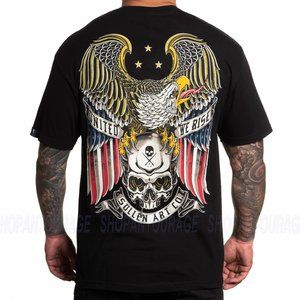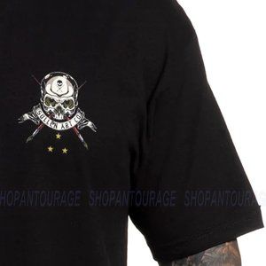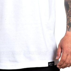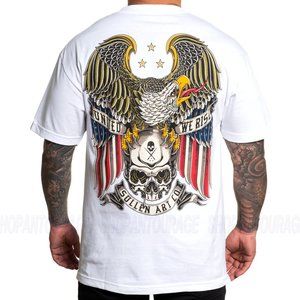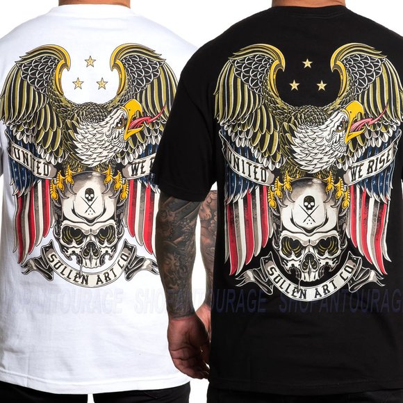 FEATURES: Crew neck t-shirt. Available in 2 Colors: Black and White. Tag less for maximum comfort. Custom Double Dye Tee. Set-in rib collar with shoulder-to-shoulder taping. Double-needle sleeve and bottom hem. Preshrunk to minimize shrinkage. Woven Sullen Badge label on the left sleeve and bottom ham.
