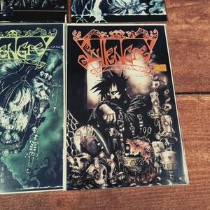 A complete set of Sullengrey comic books, featuring dark fantasy art and horror themes. This collection includes four individual issues, each with unique cover art depicting gothic and macabre scenes. These comic books offer an immersive visual experience for fans of dark fantasy art and storytelling. Each issue showcases intricate illustrations and eerie atmospheres, making this collection a must-have for collectors and enthusiasts of the genre. They are in good condition, perfect for display or reading.