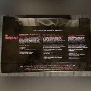 NWT still in the original box. NEVER USED. OPEN BOX Sultra Powerful Ceramic Dryer Styling 1600 Watts for fine dry normal thick hair. Energy Efficient 1600 Watt For powerful Drying Silky soft, shiny & deliciously styled Mend and defend your hair from heat damage while creating soft and sexy styles in a flash. Three temperature settings are designed specifically for fine, normal or thick hair. Exclusive Ionic Generator rapidly dries water molecules on the hair. The ceramic infrared generator heals the hair and seals the cuticle while styling lightweight and quiet. It dries hair really fast than most dryers do FEATURES no tangle 9ft cord 2 air speeds cool blast durable design No other accessories, no nozzle it is missing Ionic technology Ceramic and tourmaline nozzle guard Ceramic heated grill Two-speed sett
