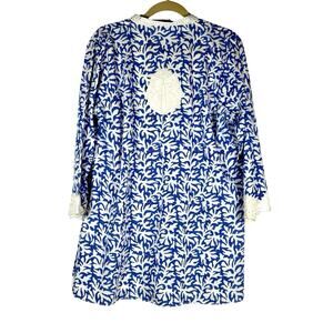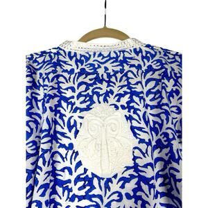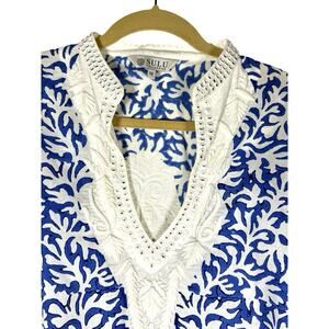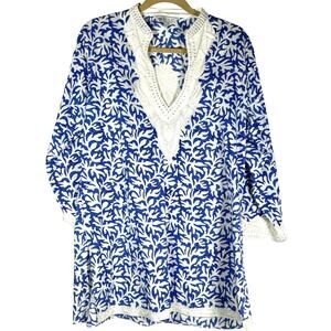 Sulu Collection Blue White Embroidered Cotton Tunic XL Boho Resort Coastal Chic