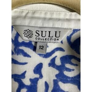 The Sulu Collection Blue Print with White Embroidered Neck, cuffs, and back. Beautiful Sulu Collection embroidered tunic in a vibrant blue and white coral motif. Features intricate white embroidery along the neckline, cuffs, and hem — the perfect piece for resort getaways or coastal everyday wear. Lightweight woven cotton blend offers breathable comfort and easy movement.