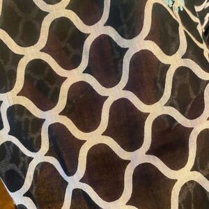 This stunning tunic showcases intricate embroidered embellishments, creating a striking contrast. The tunic features a V-shaped neckline with ornate detailing and 3/4 length sleeves, semi-sheer offering a blend of elegance and comfort. Its longer length and soft fabric make it a versatile addition to any wardrobe.