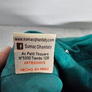 Turquoise green faux suede w/ a multicolor ethnic tapestry body