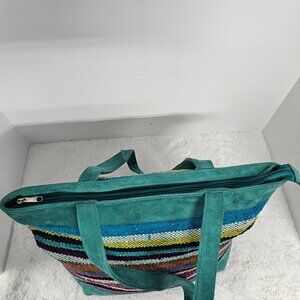Sumac Qhantaty Green Serape Tapestry Faux Suede Boho Southwestern Tote