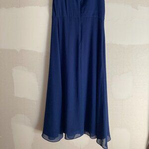 Royal blue chiffon fabric with a sheer second layer over the skirt.