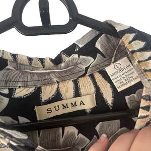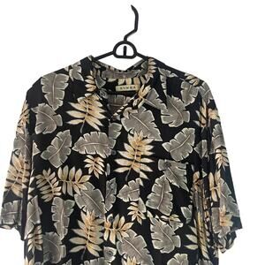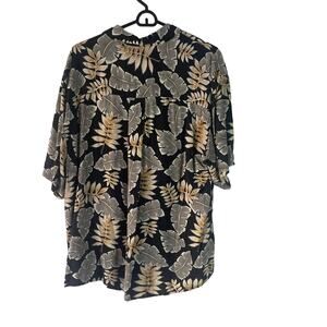 Summa Men's Size Large Rayon Hawaiian Green Black Button Up