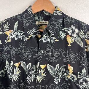 Summa Men's Size M Silk Button Up Hawaiian Aloha Shirt Tropical Cocktail Print