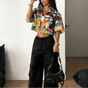 Summe All-Season Streetwear Hip-Hop Vintage Preppy Plaid Loose Cropped Shirt