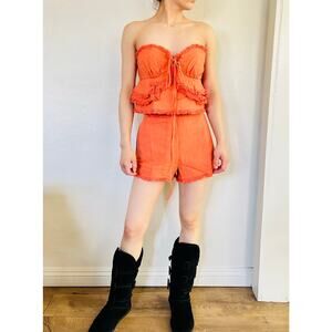 Stylish orange two-piece set with ruffled details. Perfect for a summer chic look.