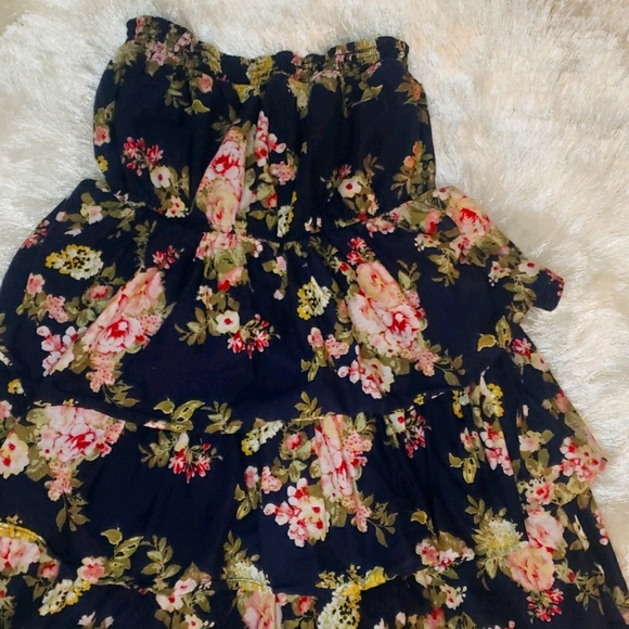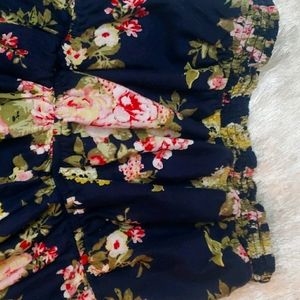 Navy with pink flowers scrunched top