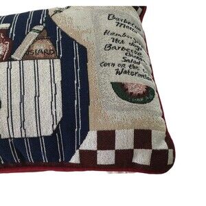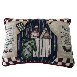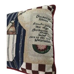 Summer BBQ Throw Pillow Red White Checkered Edges Menu Sauce Condiments Mitt.