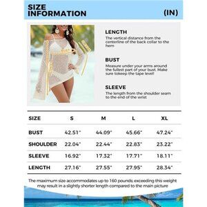 Please note that individual body shapes may affect the coverage length of the cover-up. We recommend paying attention to your measurements when selecting the appropriate size. For best care, hand wash gently to preserve the softness and shape of the garment.