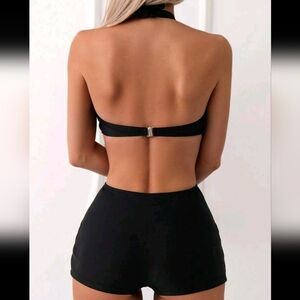 Summer Beach Ring Linked Halter One Piece Swimsuit
