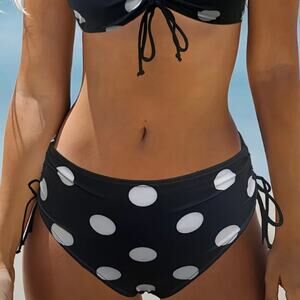 Stylish polka dot bikini set perfect for beach days. Features a chic black and white.