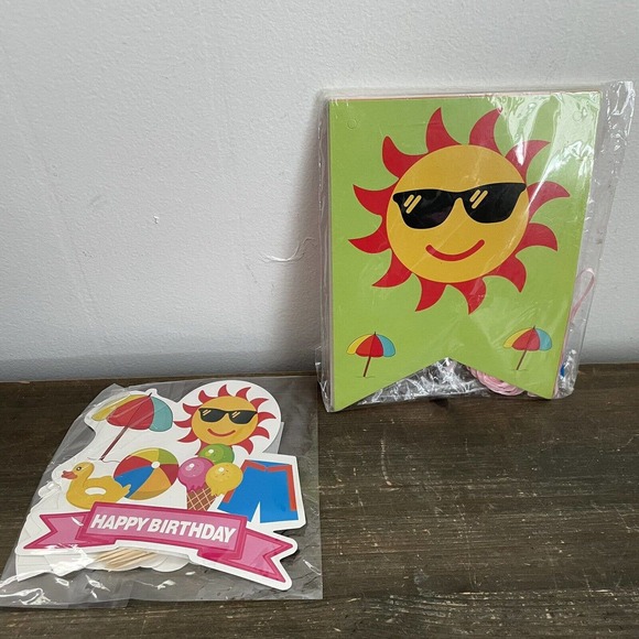 Summer Birthday Party Supplies Banner, Cake & Cupcake Toppers New Sealed