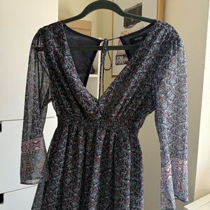Summer Blue Patterned Dress with Long Sleeves