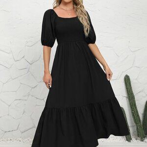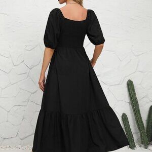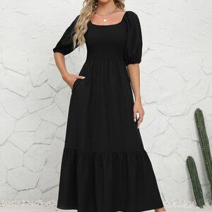 Features: Flowing maxi dress with a flattering high waist, soft lightweight fabric, and a charming floral print. The square neckline and puff sleeves add a feminine touch, while the layered hem brings a playful movement. Two side seam pockets for practicality, no tightness at the waist for all-day comfort.