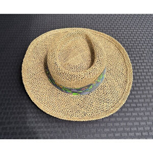 Summer Club Straw Hat Outback Hat Size Medium Australia Floral Fabric Greenery