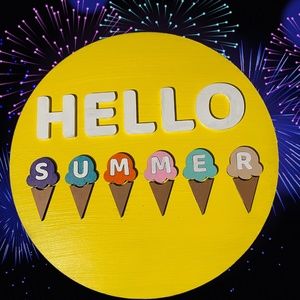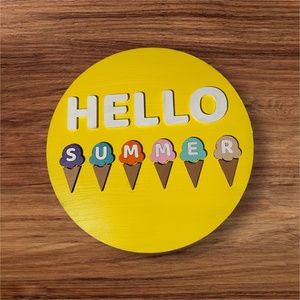 Elevate your entryway with our charming "Hello Summer" Front Door Hanger! Crafted with precision using laser cutting technology, this delightful hanger boasts a 15" diameter, making it the perfect statement piece for your door.