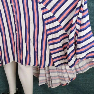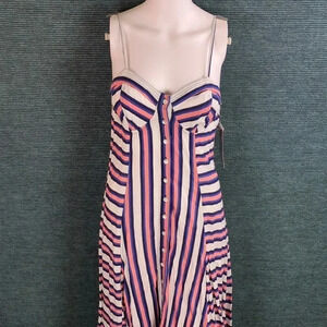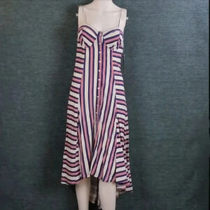 Summer Dress! Love, Fire Blue & Coral Striped Button Front Fit & Flare Dress