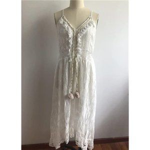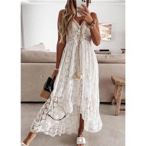 Summer Dress V Neck Spaghetti Strap Sleeveless High Waist A Boho White