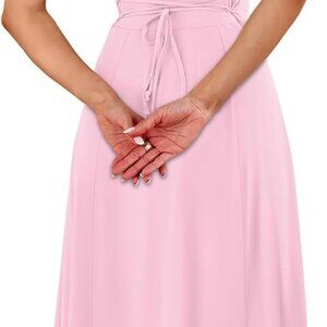 Scoop Neck & Adjustable Back Tie-- Midi Dresses with adjustable back tie lets you tighten for a flattering silhouette or loosen for breezy comfort. Thick stretch waistband smooths tummy and moves with you all day. Flattering scoop neck highlights collarbones, offers breathable comfort, and pairs effortlessly from brunch to evening events elegance made easy.