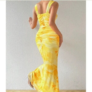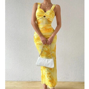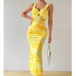 Summer Floral Print Twisted Knot Hollow Out Pleated Bodycon Mermaid Cami Dress