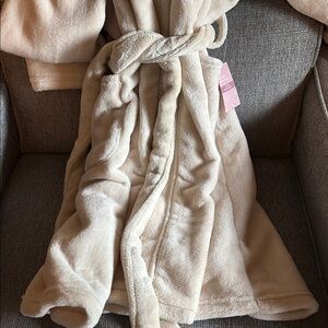 Luxurious cream robe. Soft and cozy fabric. Perfect for lounging.
